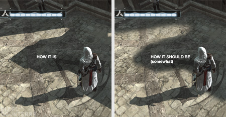 It’s always intriguing to compare two different approaches to a given problem. ES MMA’s offering is a bit mix and match, and downright bizarre, while UFC pulls off the shadowing with flying colors, given the limitations of the current-gen console hardware. Perhaps the developer of ES MMA EA Tiburon didn’t have for some reason a decent ambient occlusion algorithm at their disposal, and thus ended up doing something rushed and unintuitive.